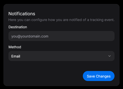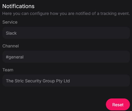 We currently support two methods of alerts, Slack and Email. Notifications are configured in the settings page.