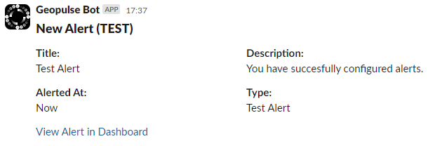 You'll see a test alert sent to Slack to verify the configuration works properly.