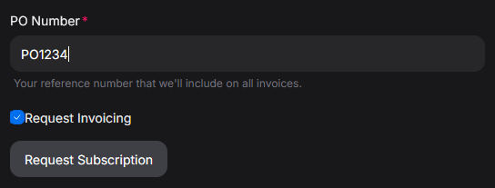 If you elect for an invoice, you can add in your PO/reference number that will be inserted into all invoices.